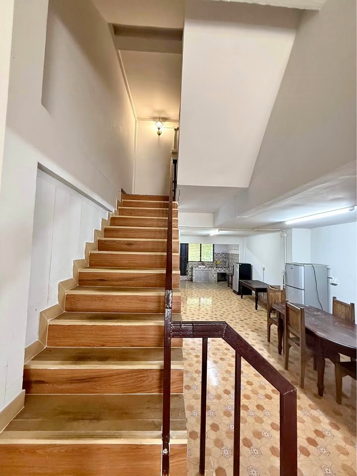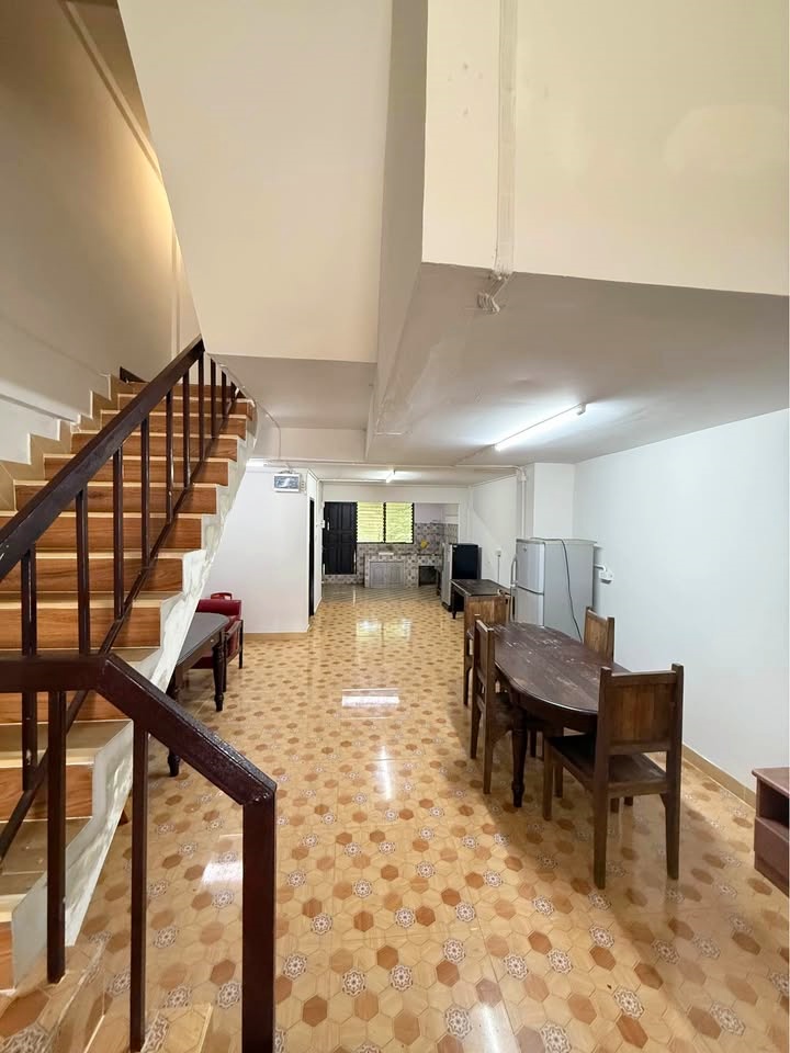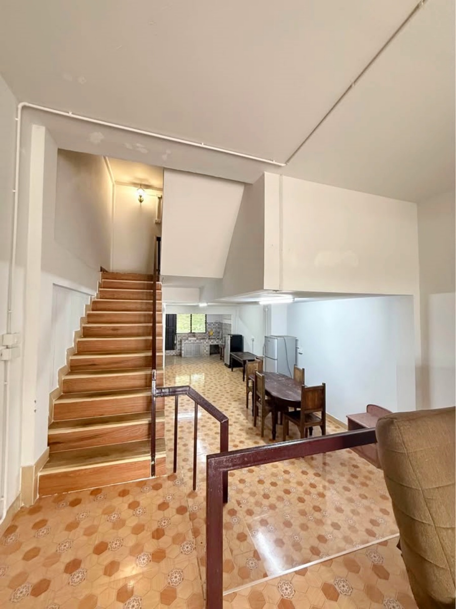 Two-storey townhouse for rent in Sanklang, Sankampaeng. Excellent location, fully furnished, and very convenient for commuting. Only 2 minutes to M Sport Complex.