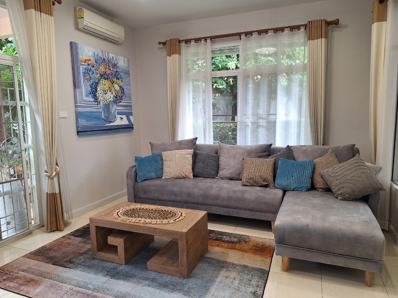 House for Rent – 2 Storeys in a Gated Community Great location, fully furnished, and beautifully decorated! Only 4 minutes from Charoen Charoen Market.