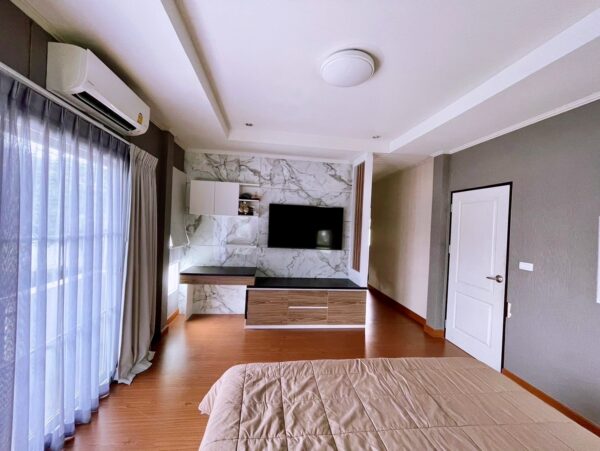 – Master bedroom includes built-in furniture, a separate partitioned area, and a walk-in closet
