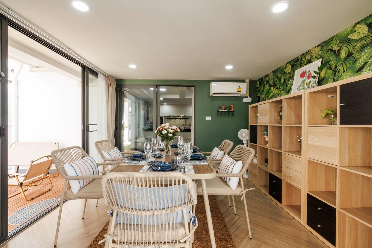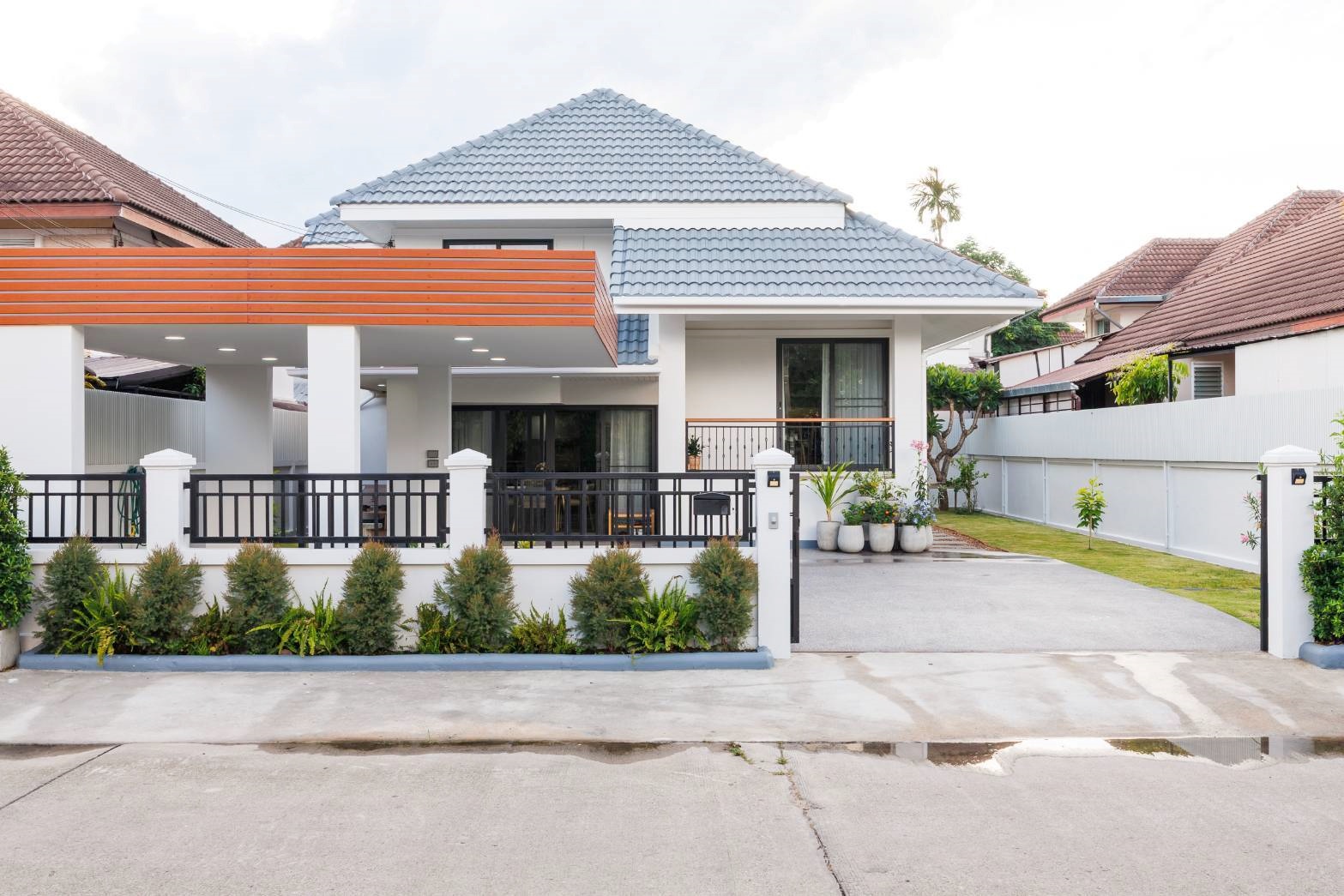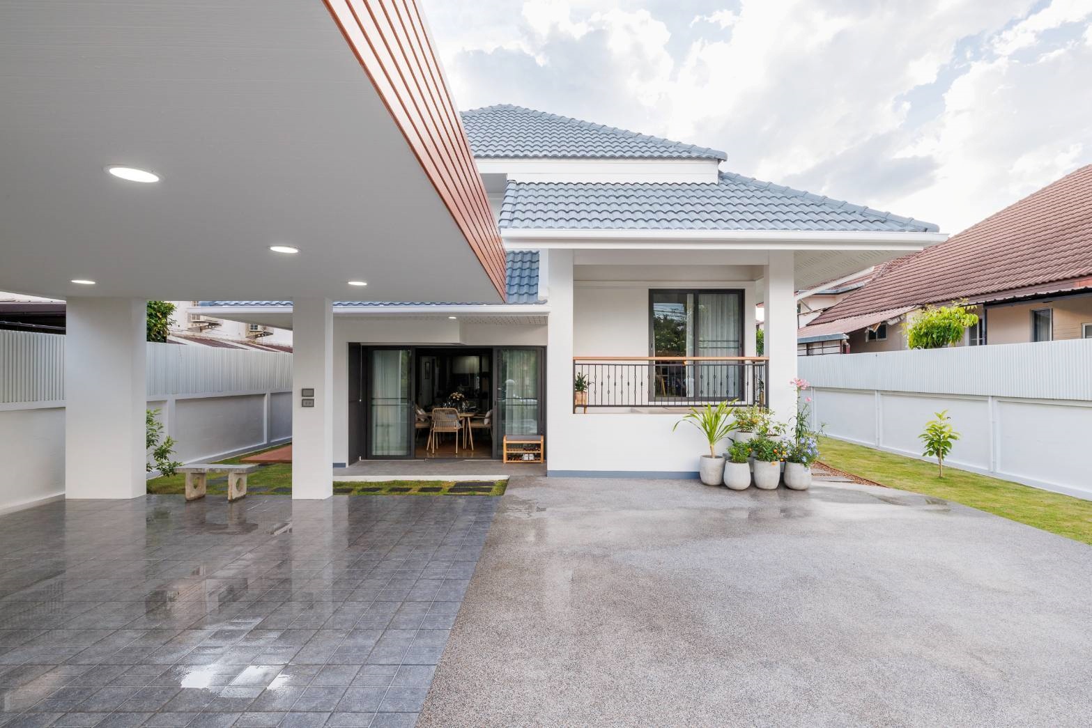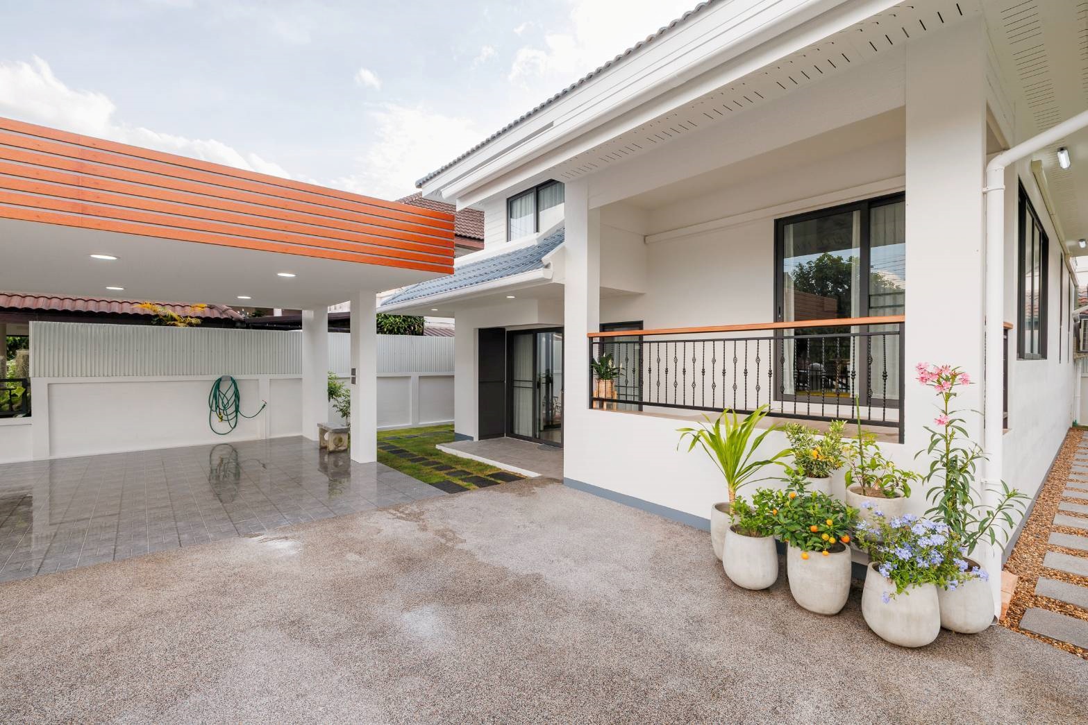 A newly renovated split-level 2-storey detached house, fully furnished with complete electrical appliances, ready to move in. Located in the prime area of Sansai, just 1 minute from Phu Doi Market. Easy access, not far from the main road, and situated in a safe community.
