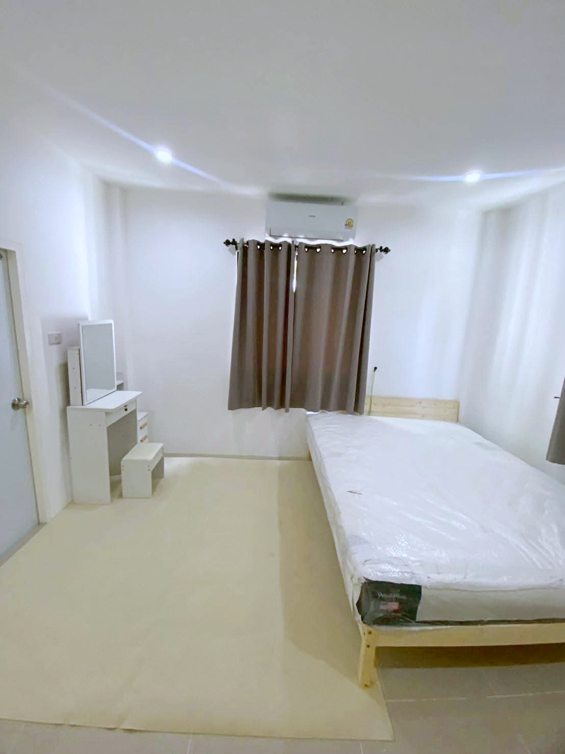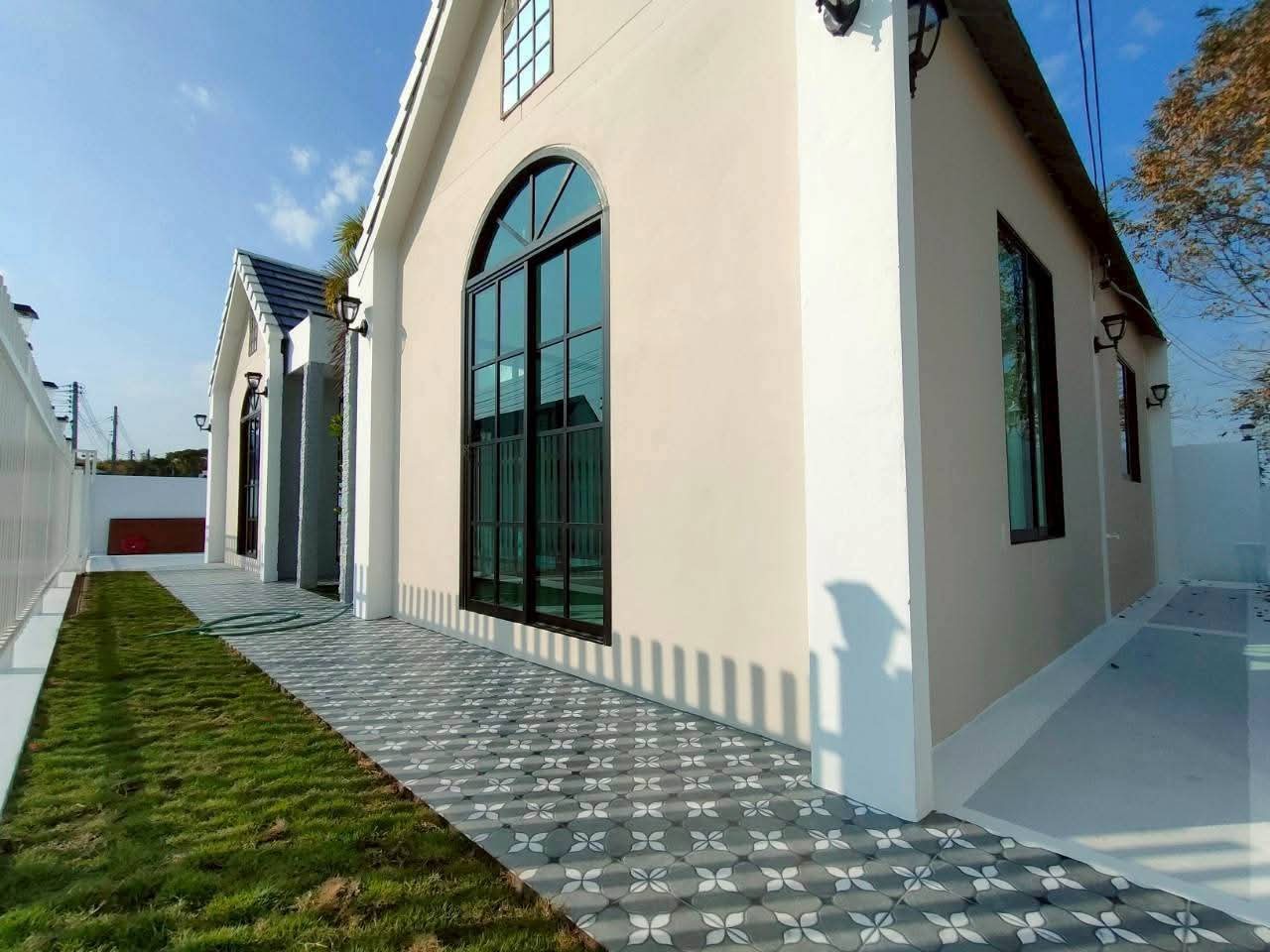 For rent: A 1-storey detached house near San Pa Tong Hospital (4 minutes). Brand-new house, never lived in before. Fully furnished with electrical appliances and air conditioning. Ready to move in.