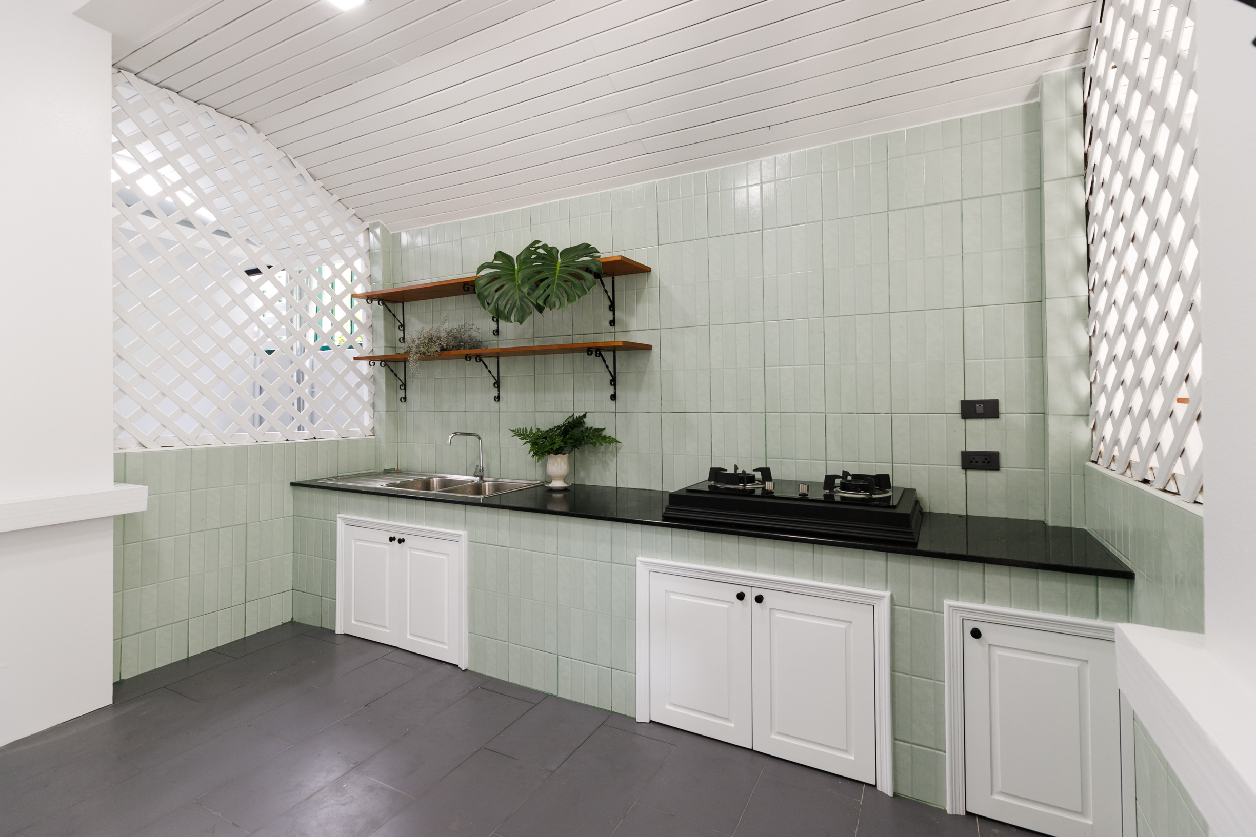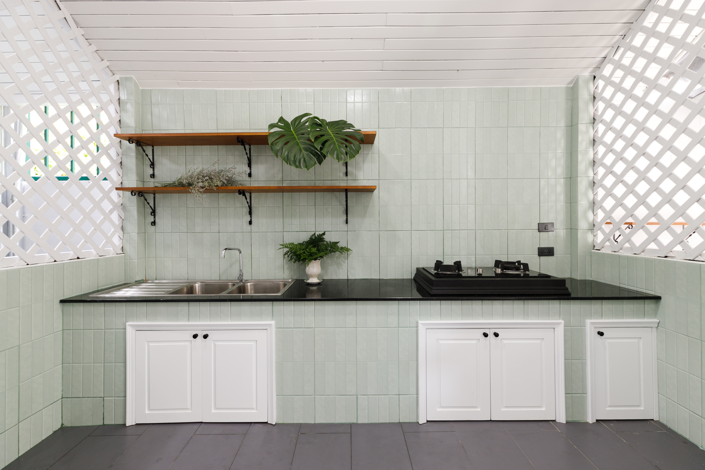 ครัวไทย เคาน์เตอร์ปูน มีซิงค์ และเตา