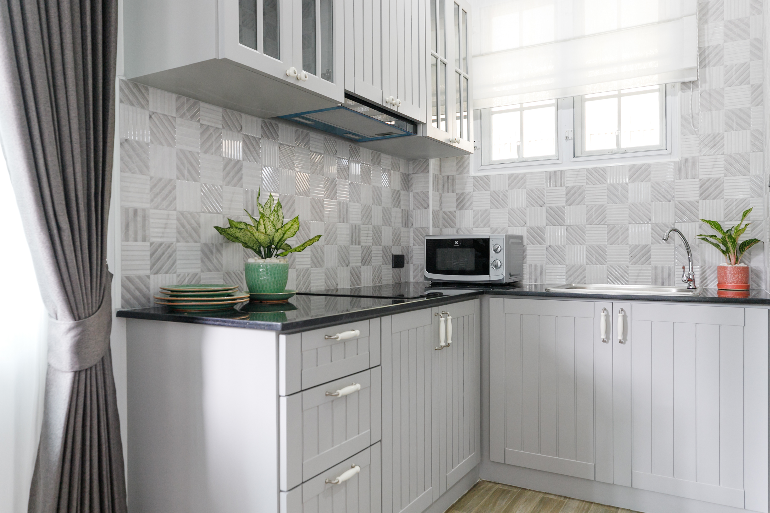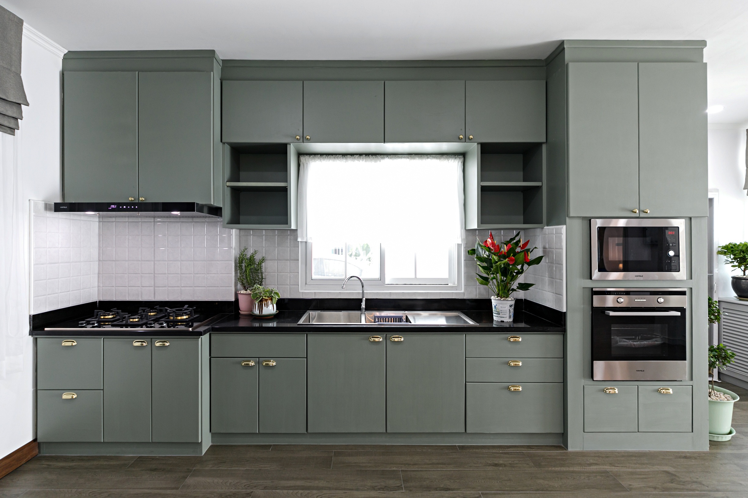 ห้องครัว เคาน์เตอร์บิ้วอิน + เตา + ฮู้ด + ซิงค์ + เตาอบ + ไมโครเวฟ