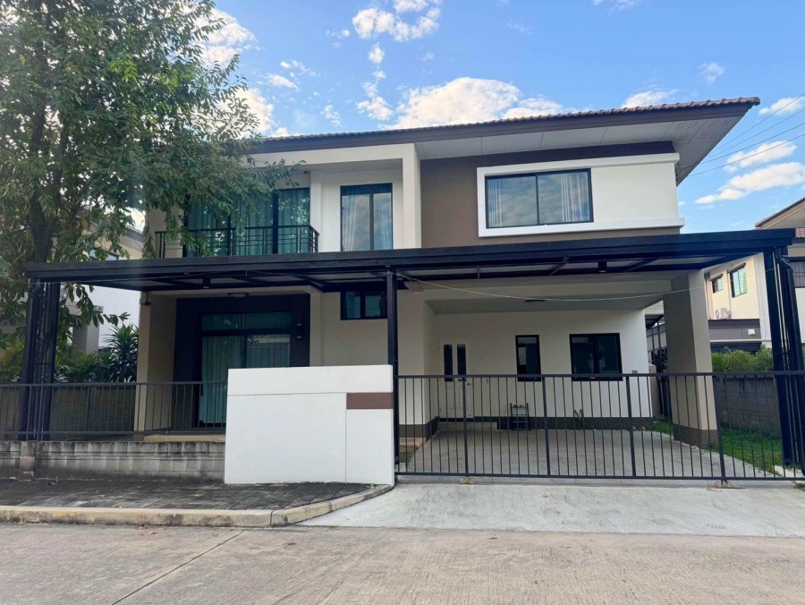 豪华社区两层独栋房屋出租 位于高品质住宅区,24 小时安保。 地段优越,家具齐全,靠近 Tha Rua 市场、Rimping Meta Mall 和 Central Festival 清迈购物中心。